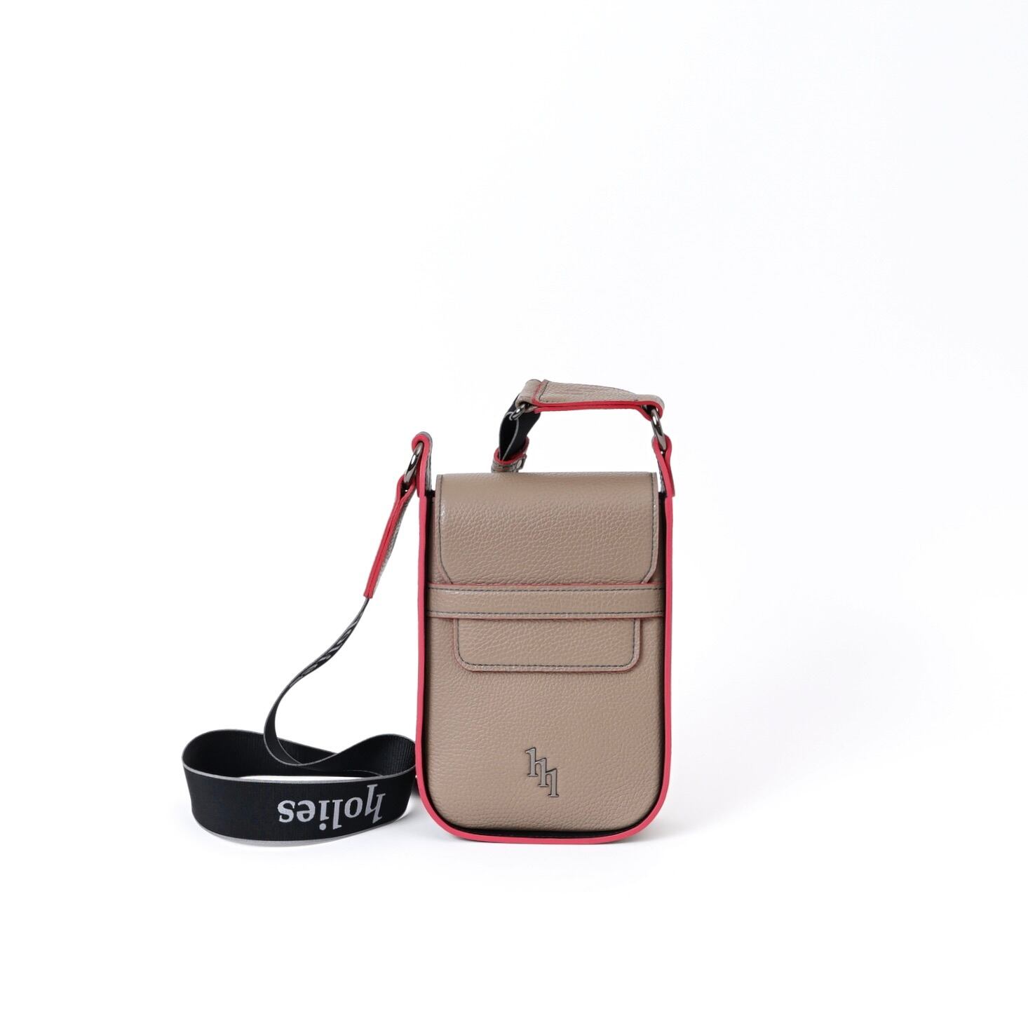 落ち着いたTAUPEの本体に、鮮やかなSCARLETのコバ仕上げを施した、こだわりのミニショルダー。
