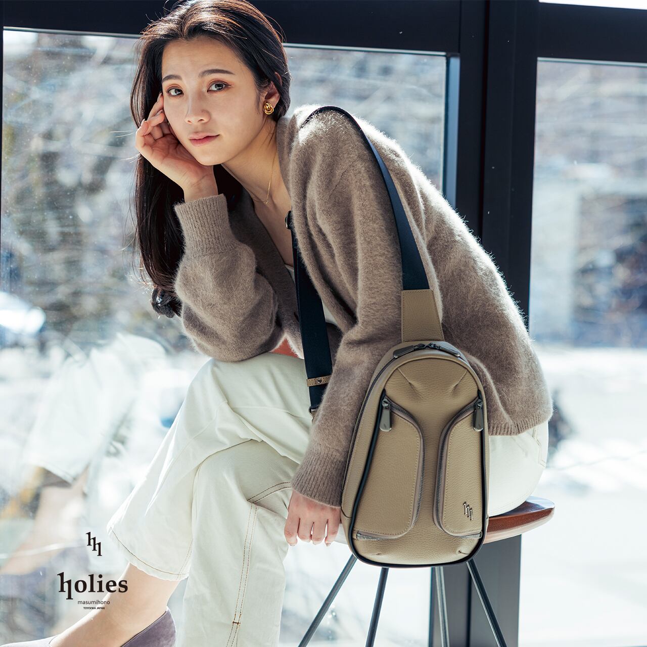 型崩れしにくい美しいフォルムと、使いやすさを両立。holiesが贈る大人のボディバッグ。