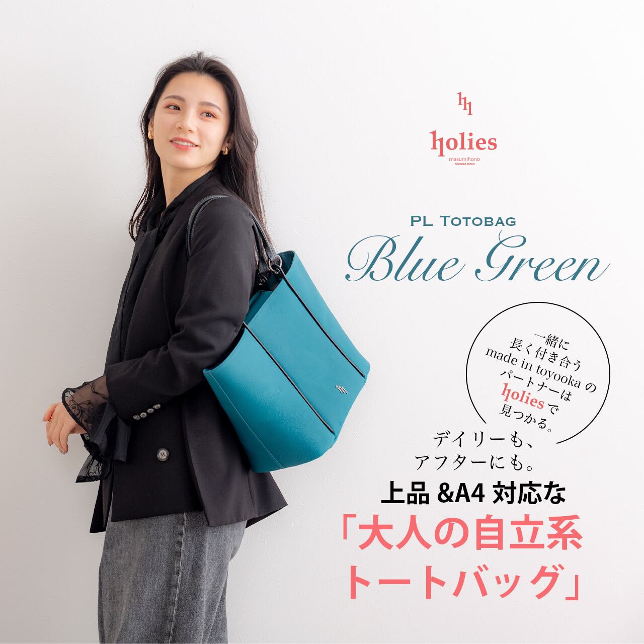 美しさと実用性を兼ね備えた、holiesレザーシリーズのトートバッグ。