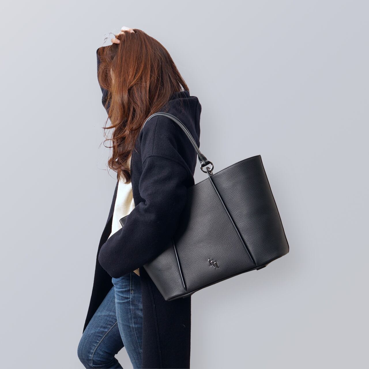 エレガントでシンプルなフォルムに、シャープなエッジを効かせたピラーラインが特徴的なアイコニックなデザイン。洗練された美しさの中に個性を宿し、フォーマルな印象を残しながらも、シーンを選ばず日常使いができる、大人のための上品なトートバッグです。シンプルながらも存在感のある佇まいは、コーディネートに自然に溶け込みながら、さりげない高級感を演出します。
