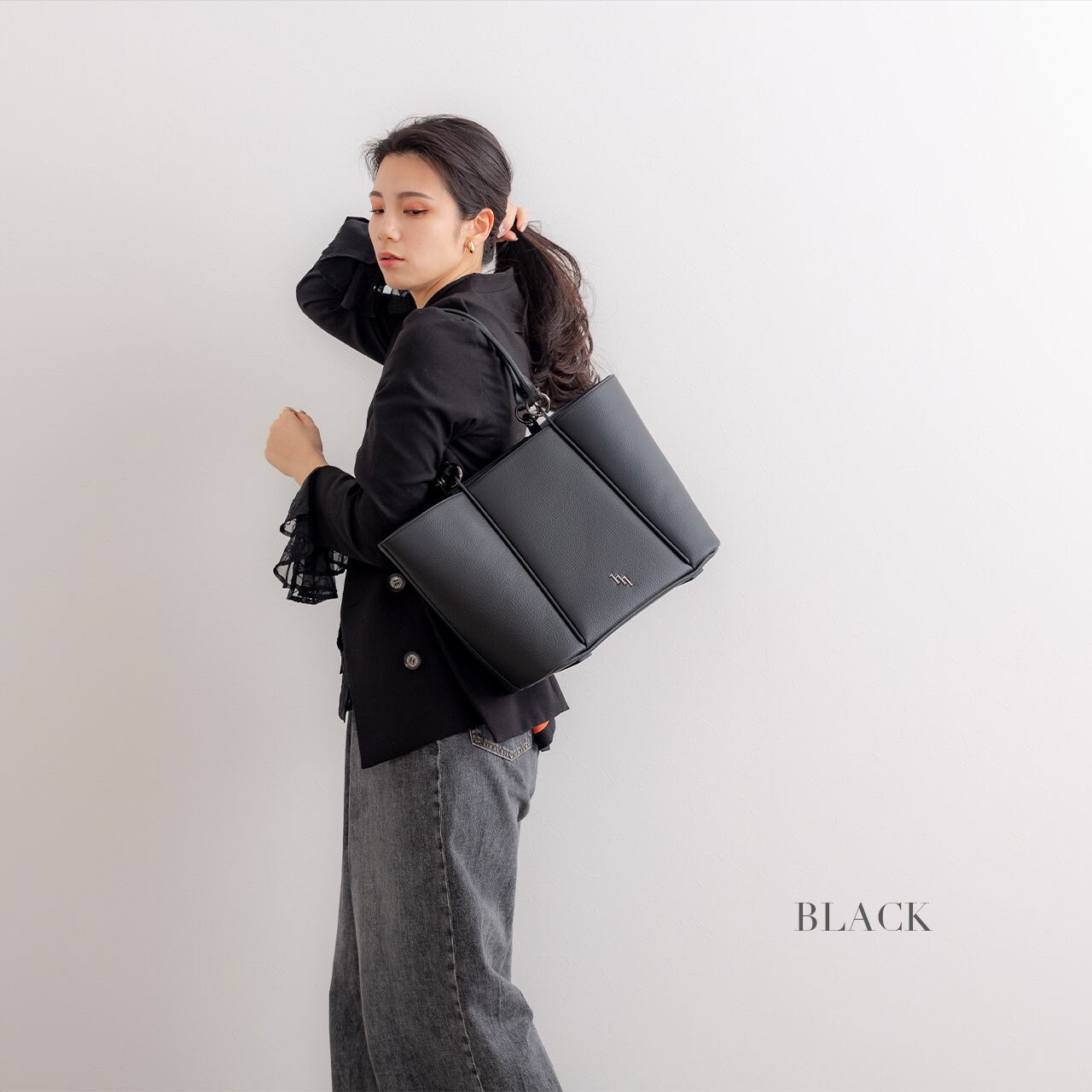 ***漆黒のエレガンス、品格を纏うブラックトート***