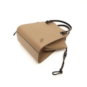 フォーマルとカジュアルを自在に行き来する、巾着×構築フォルムの2面性バッグ。