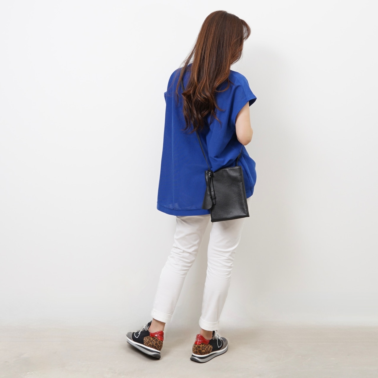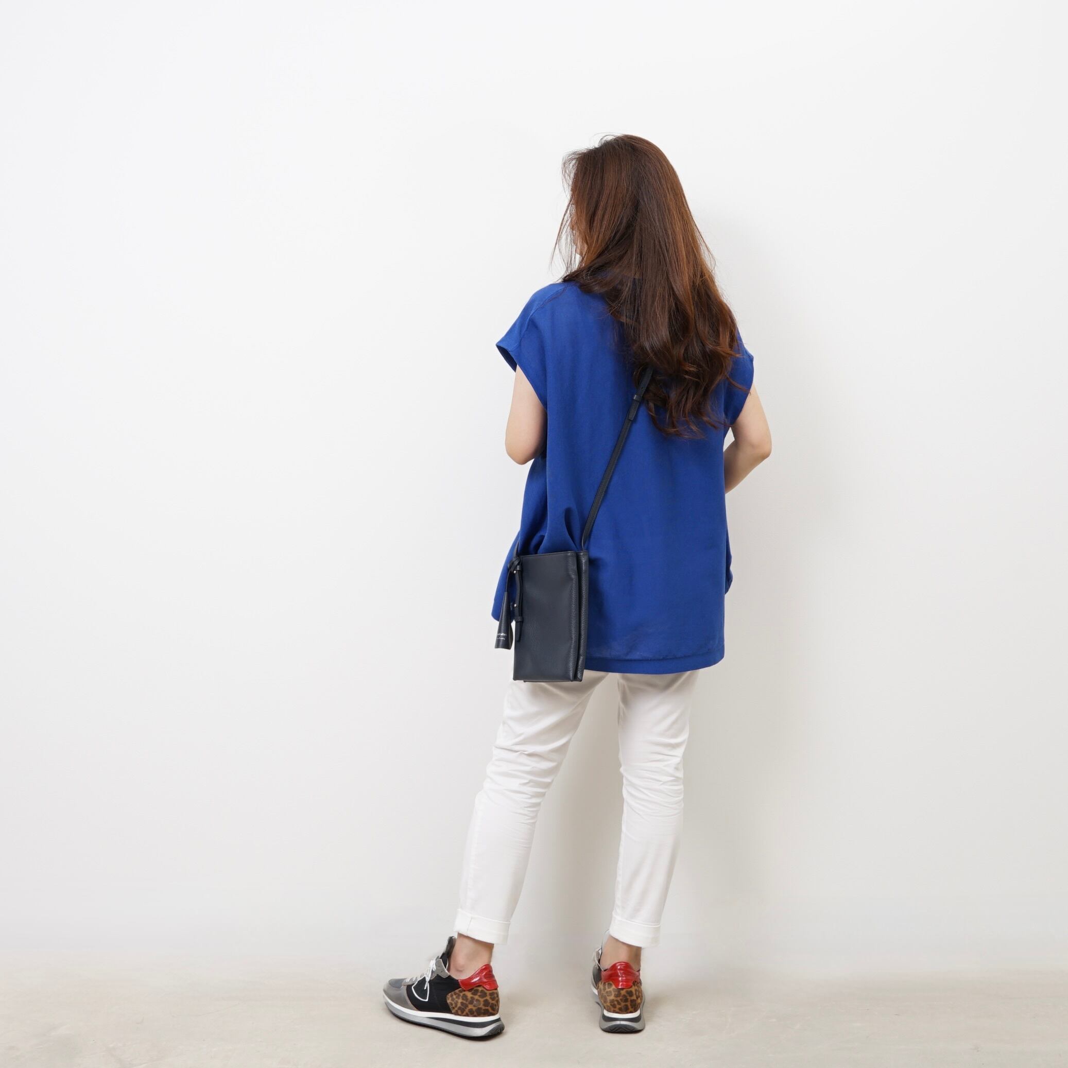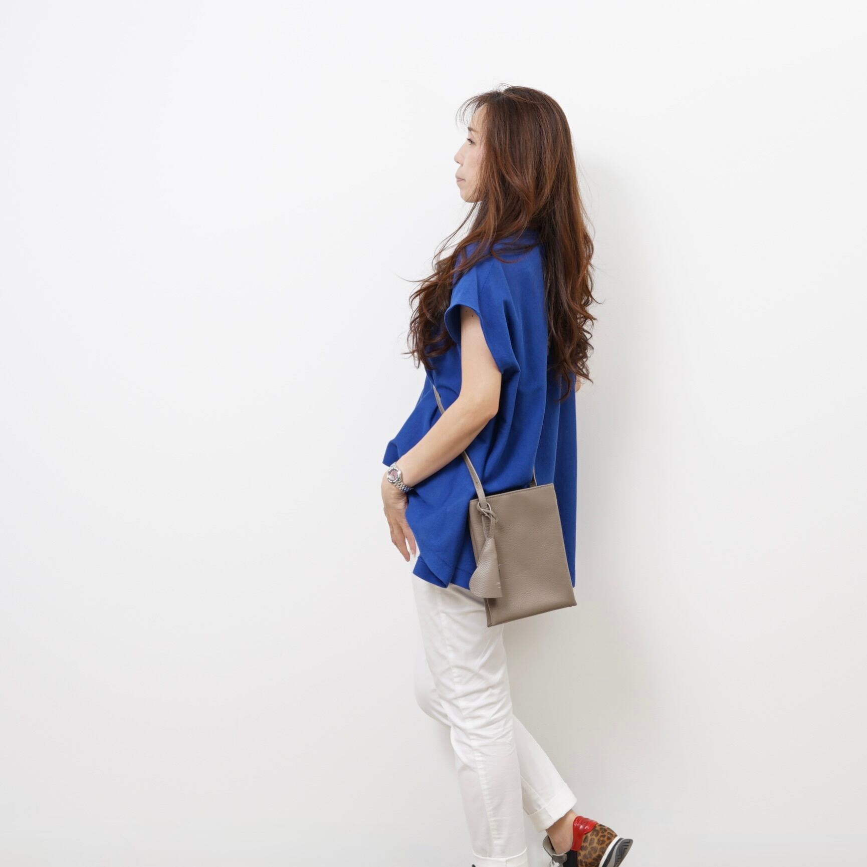 快適に美しく、旅するように毎日を過ごすためのウエアとしてデザインされた、必要最小限のアイテムをスマートに携帯できるミニマルウエアです。2層式のポーチで、iPadmini等もすっぽり収まる収納力です。2層に分かれ整理整頓がしやすく取り出しやすい仕様で、使い勝手も抜群です。貴重品を収めるファスナーポケットもついています。外装は素材感を楽しんでいただけるようにイタリア製の弱シボ加工牛革を使用。内装はシャンタン織のレーヨンを使用しています。