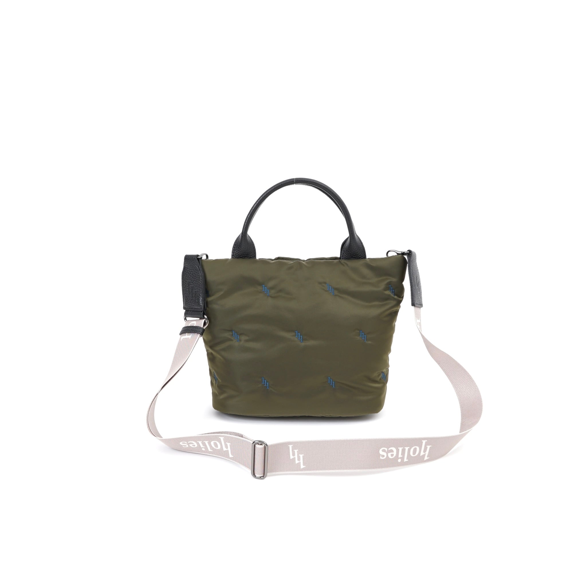 ふわふわの極厚ボンディングナイロン生地に、ブランドロゴの刺繍を添えて。