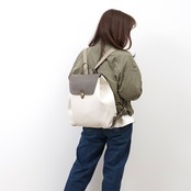 大きすぎず小さすぎない丁度いいサイズ感のリュックは普段のお出掛けからご旅行まで、幅広いシーンで気軽に合わせやすくて○。肩紐は擦れにくい背負いベルト構造になってます。
