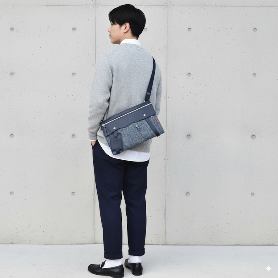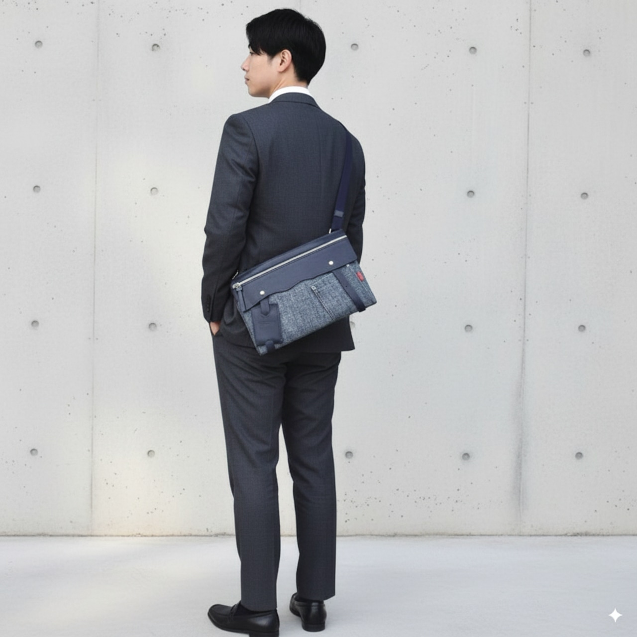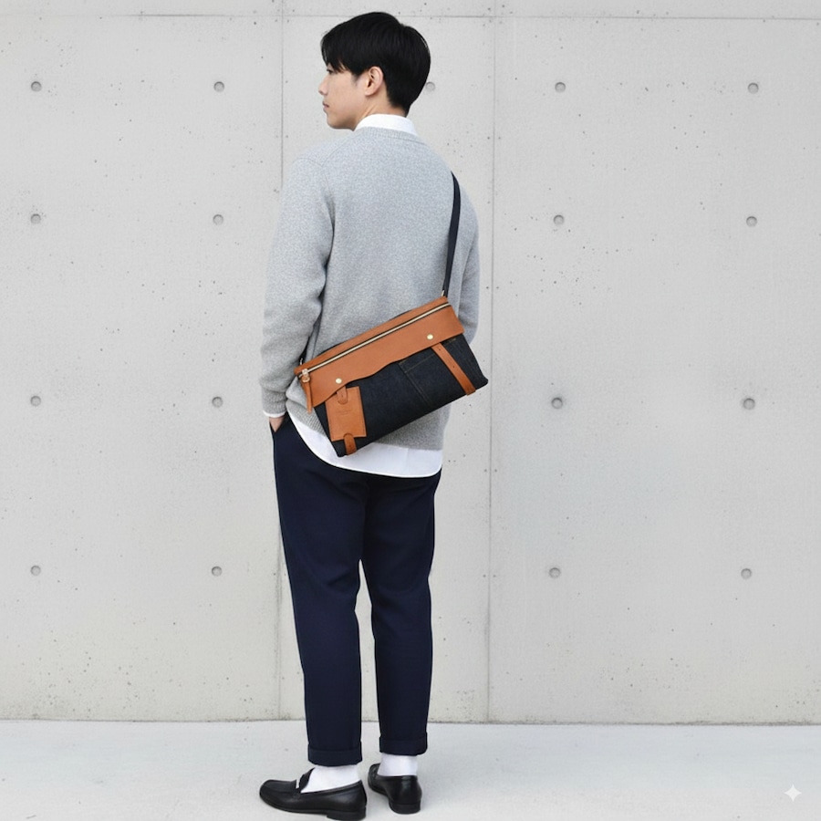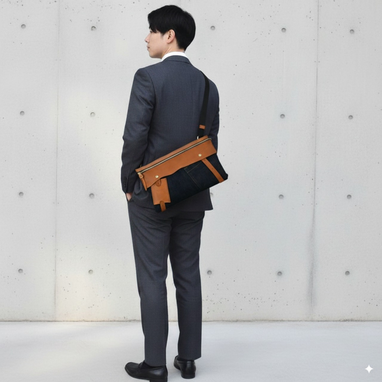 イタリアンレザーとも好相性、上質デニム製クラッチショルダー。