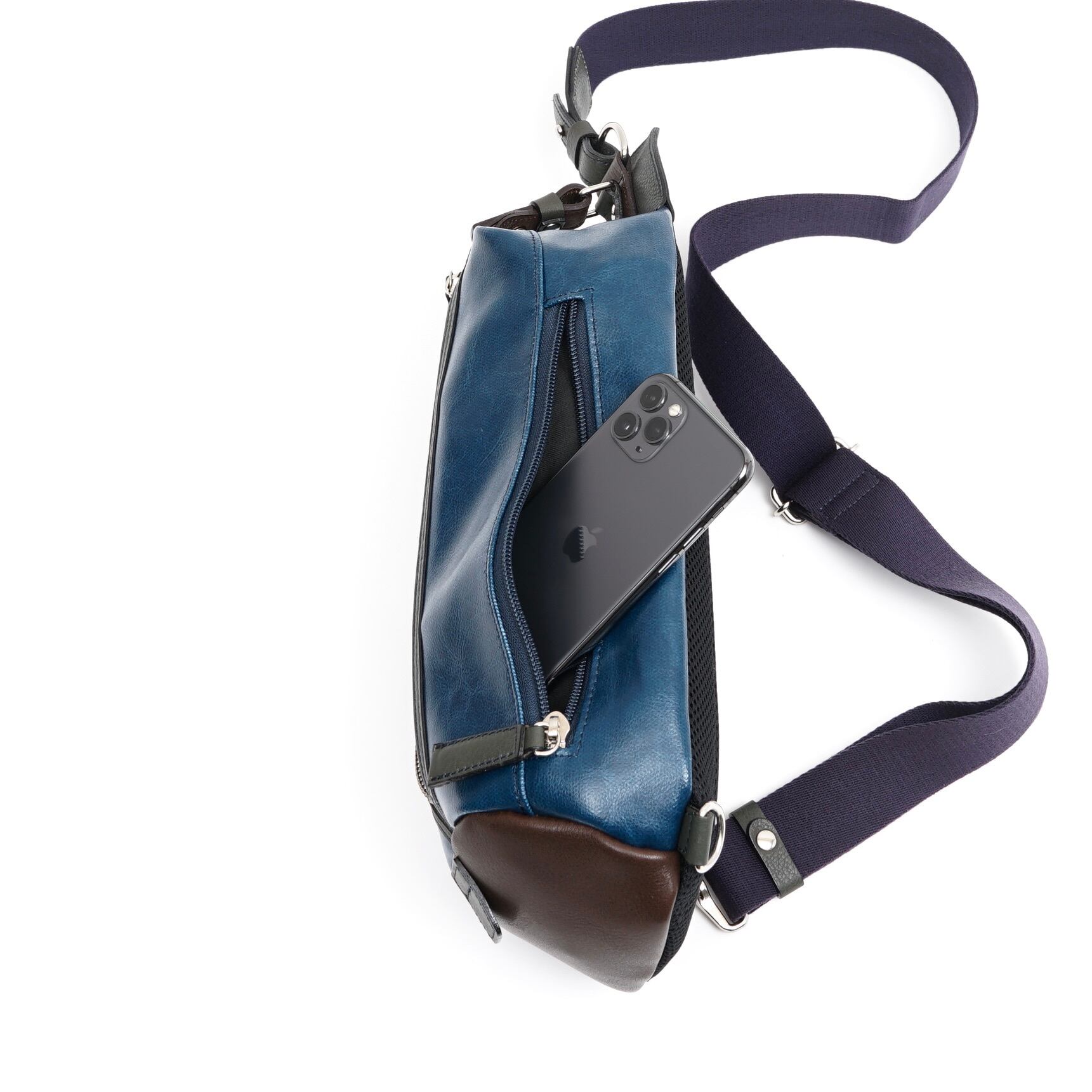 右掛け・左掛け、どちらでも快適にフィットする 先端ファスナー構造。サイドポケットの配置にもこだわり、直感的な使いやすさを実現。